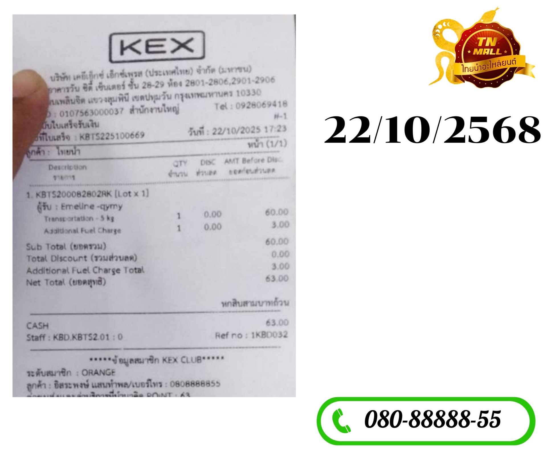 เลขติดตามพัสดุประจำวัน 22/10/68 ขนส่ง kerry