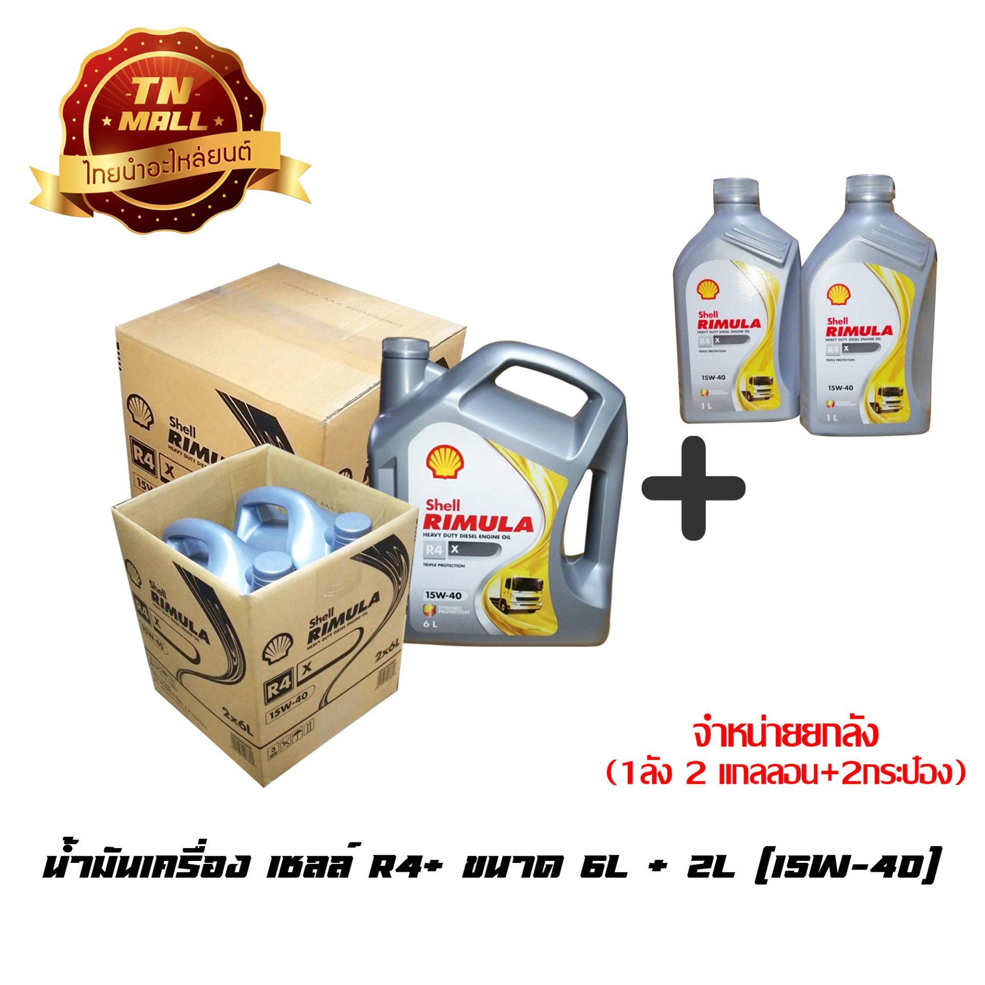 น้ำมันเครื่อง เชลล์ R4+ ขนาด 6ลิตร + 2ลิตร (15W-40) ยี่ห้อ Shell