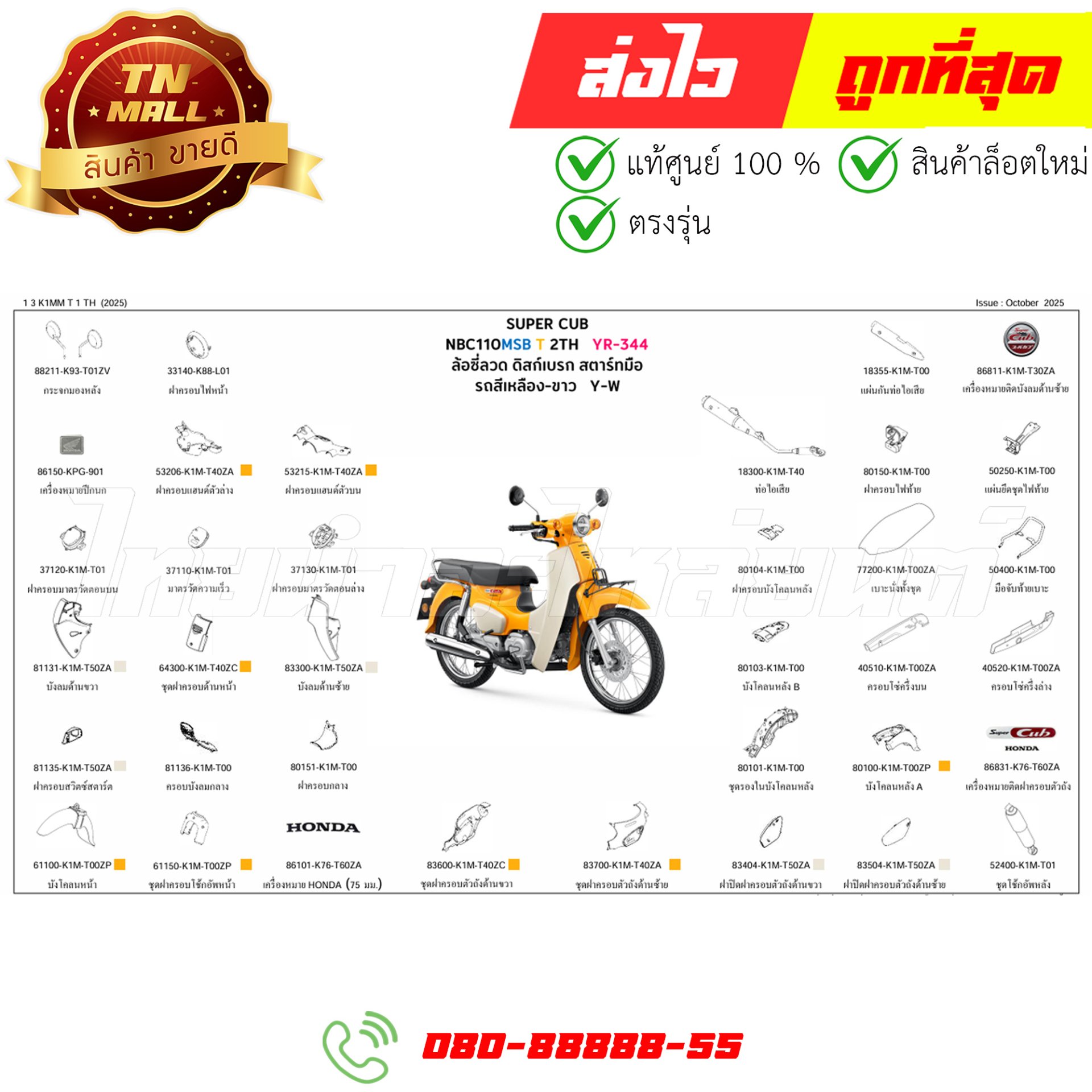 ชุดสี Super Cub ปี 2025 YR344 เหลือง รุ่นจานดิสเบรคหน้า แท้ศูนย์