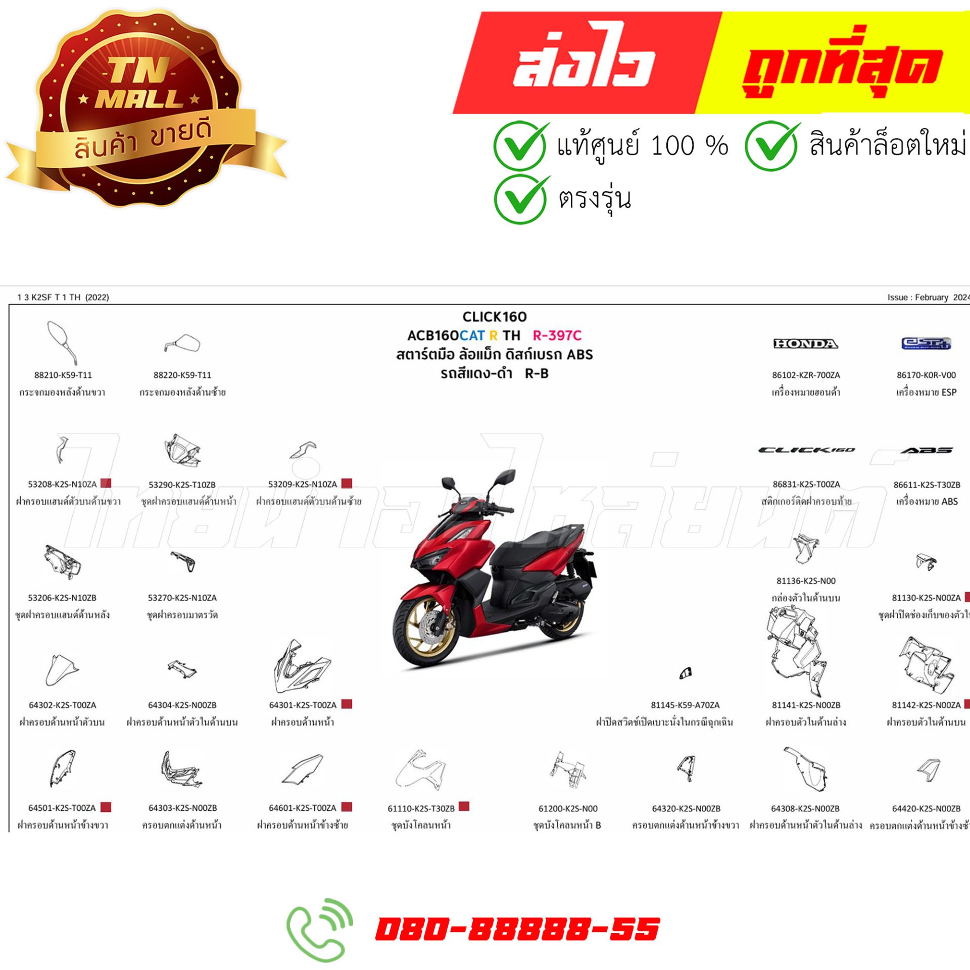 ชุดสี Click160-i ปี2022 R397 แดงด้าน แท้ศูนย์ ยี่ห้อ Honda By ไทยนำอะไหล่ยนต์